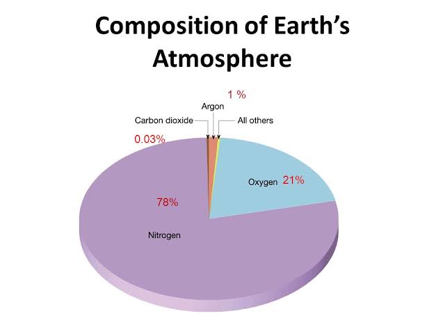 इसमें आमतौर पर 78% नाइट्रोजन और 21% ऑक्सीजन 0.97% आर्गन और कार्बन डाइऑक्साइड 0.04% विभिन्न गैसों और जल वाष्प की मात्रा का अनुसरण करते हैं।